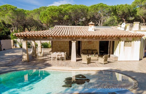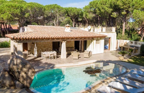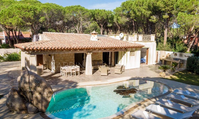 This charming villa in Sardinia with a private pool features air-conditioning, a rooftop solarium and comfortable outdoor furniture.