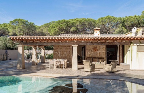This elegant villa on the northern-eastern coast of Sardinia has a wonderful location just few steps from the sea. The property is surrounded by pine trees what guarantees fresh and clear air just by the sea.