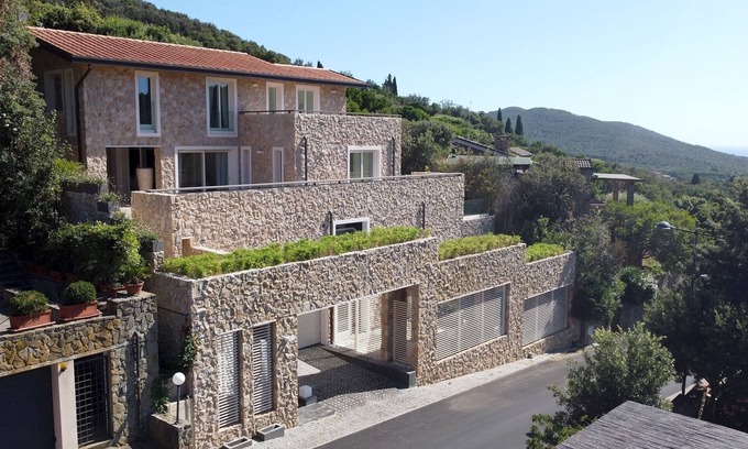 Villa Le Mandrie, a true gem of design and elegance, stands in the renowned elitist seaside resort of Punta Ala, just 5 minutes drive from the sea. The construction, completed in 2021, has given life to a splendid three-floor residence of great luxury with attention paid to every minimum detail by the owners. The exterior is clad in local stone while, in the interior, lava stone, travertine from the quarries of Saturnia and fine mosaic have been magnificently blended in an elegant choice of minimal, essential modernity, designed to offer maximum comfort for a spectacular holiday. The spacious rooms are a riot of light, enhanced by the large glass walls in the living area and by the panoramic bedrooms with private bathrooms; the first two floors are equipped with a convenient luxurious lift. The particular well-kept garden, terraced on several levels with natural wood decking, contains the outdoor dining area, the delightful, mosaic-lined infinity pool and the living area which offers a beautiful view of Punta Ala and the crystal clear sea that shines on the horizon. But the true gem of Villa Le Mandrie, in which quality standards reach a rare excellence, is without a shadow of doubt the wonderful wellness room with the large Jacuzzi tub and Turkish bath, both lined with mosaics of various fantastic shades and reflections, ranging from copper to bronze and gold. Just close the door to leave behind the stress of everyday life and emerge yourself in absolute relaxation. In this heavenly place, in addition to the Punta Ala Golf Club, located very close to the villa, and the sailing regattas, Punta Ala also offers several alternatives regarding the beaches. The beach near the port has a slightly wild atmosphere with its white pebbles that lead to various rocks, to enjoy this splendid sea. It also boasts a very long beach which can be accessed from the vast pine forest and which is an excellent solution for those looking for a holiday surrounded by nature. Punta Ala is ideal as a starting point for exploring the famous neighbouring beaches, for example in Castiglione della Pescaia, or for venturing into the hinterland to visit small borghi. Services and shops for basic needs are only 1 km away.