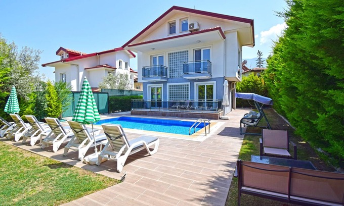 Villa Lemurya, this villa is one of the most unique villas for those who are looking for a peaceful holiday. It is located in the Hisaronu area and only 100 m. by walking distance to Hisaronu Town Center. The villa consists of 3 bedrooms and 1 living room.