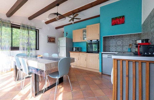 Meet Villa Les Cigales, a delightful holiday home nestled among the greenery of the Cévennes, near the authentic village of Saint-Brès. This atmospheric and child-friendly villa is situated on a large, fully enclosed plot of 2000 m², with a beautifully landscaped garden full of Mediterranean trees and flowers – a paradise for those seeking tranquility and families.