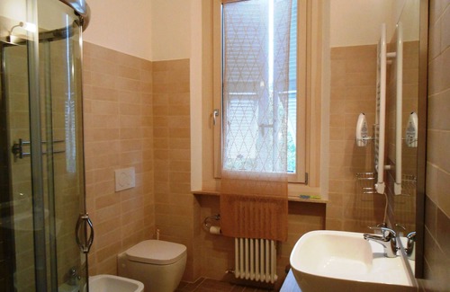 Villa with garden built in the Art Nouveau era, which develops on two levels of floor. It is located 400 m from the railway station, 400 m from the historical center and 850 m from the sea. The JUNIOR SUITE THONET is on the first floor, measuring 25 square meters and is divided into: entrance hall, bedroom, bathroom. BEDROOM. It has a double bed and a single bed and can accommodate up to three people. The floor is in original hexagonal cement; the furniture (bed, dresser, wardrobe, table, armchair, chandeliers) is the vintage of the 50's perfectly restored. The equipment, facilities and services of the bedroom are: 2 large windows with glass-room, with shutters and darkening blinds; heating system with radiators; conditioned air; tv 32 ''; mini-bar; safe; wi-fi. BATHROOM. It has a large window; sanitary facilities (wc, bidet and sink) "suspended" to ensure maximum cleanliness and hygiene; corner shower cabin with 4 glass walls, two of which have furniture; towel; set of towels; courtesy products such as sponge slippers, shampoo and bath foam monodose, hair headband etc. BREAKFAST. The rich breakfast is served in a spacious lounge on the ground floor furnished with walnut furniture, featuring a famous local chef. It is served on time, set by the Guest, between 8am and 10am. Italian breakfast includes: milk, coffee, tea, juices, smoothies and fresh fruit salad, yoghurt, cooked cream, butter, jam, toast, croissants and hot rolls, homemade cakes. Alternatively or in addition they propose salami, dairy products, frits and hot crostini. INCLUDED IN THE RATE. Daily housekeeping and bathroom cleaning; change of linen every three days; bicycles; copier, printer and scanner; shuttle service to / from the railway station. SERVICES ON REQUEST. Shuttle service to / from Pesaro railway station and from / to Rimini or Ancona airports. NOTES. The maximum number of hosts is 3, regardless of their age. The single bed can be replaced by a cradle with shore. There is no kitchen or kitchenette. Animals are not allowed. Smoking inside the building is not permitted. Check-in after 15.00 (please call one hour before arrival). Check-out by 10:30.