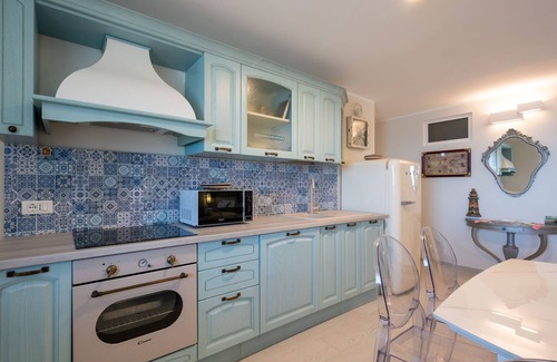 3-room apartment 75 m2, on the lower ground floor. Fully renovated in 2025, tasteful and cosy furnishings: 1 room with 1 double bed (1 x 160 cm, length 200 cm). 1 room with 2 beds (80 cm, length 200 cm). Living/sleeping room with 1 double sofabed (1 x 160 cm, length 200 cm), satellite TV. Kitchen (dishwasher, Gas stove, 4 gas rings, toaster, kettle, electric coffee machine). Shower/bidet/WC. Air-conditioning. Marvellous view of the sea. Facilities: washing machine, dryer, hair dryer. Internet (WiFi, free). Please note: private entrance, smoke alarm, fire extinguisher. IT009029B487R5TCYC