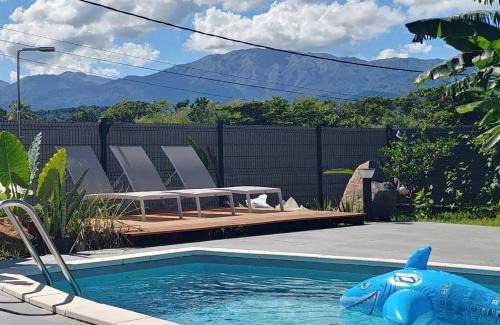 Offering a spa and wellness center, villa Lorenza offers accommodations in Petit-Bourg. This property offers access to a balcony, a pool table, free private parking, and free Wifi. The villa provides a pool with pool views, hot tub, and a 24-hour front desk. Providing a terrace and mountain views, the spacious villa includes 4 bedrooms, 2 living rooms, satellite flat-screen TV, an equipped kitchen, and 4 bathrooms with a walk-in shower and a hot tub. A private entrance leads guests into the villa, where they can enjoy some fruit. The villa offers bed linen, towels, and laundry service. There is a coffee shop, bar, and lounge. You can play table tennis and darts at the villa. Outdoor play equipment is also available at villa Lorenza, while guests can also relax in the garden. Pointe-à-Pitre Le Raizet Airport is 12 miles away.