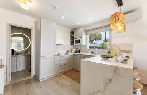 The interior of the villa is fully equipped to ensure a comfortable stay. It has air conditioning, free WiFi and a fully equipped American kitchen with appliances such as a fridge, oven, microwave, coffee maker, toaster, kettle and juicer. The villa has 2 bathrooms with shower, iron and television to complete the amenities.