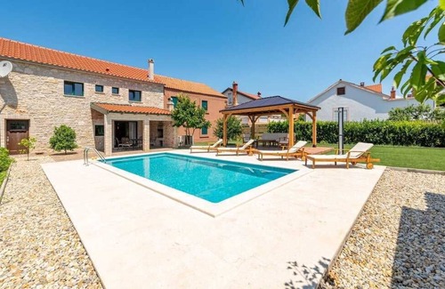 On the island of Vir, which belongs to the Zadar archipelago, you will find the rustic Villa Maestral. This stone villa will provide you with a stress-free vacation and allow you to recharge your batteries while at the same time, you have the opportunity to visit popular tourist destinations such as the historic city of Zadar.Villa Maestral InteriorThe villa spreads over two floors, and on its living area of 90 m2, it can accommodate up to 6 guests. On the first floor of the villa, there are two bedrooms that are equipped with a comfortable double bed, and air conditioning and have access to an en suite bathroom, which provides guests maximum privacy. Both bathrooms are equipped with a sink, toilet, and shower and contain all the necessities for a carefree vacation. There is also a small balcony on the first floor where guests can enjoy the morning sun. On the ground floor of the villa, guests will find a living room where two more people can sleep on the sofa bed. Next to the the living room, there is a dining room and a wooden kitchen, which is equipped with all the necessary appliances and dishes for preparing delicious meals. Also, there is a guest toilet on the ground floor of the villa.Villa Maestral ExteriorFrom the living room and dining room you can access the covered terrace of Villa Maestral, where guests can enjoy their meals in the shade or enjoy the company of their friends and family. Next to the terrace, there are even two grills, one of which is a gas grill and the other a charcoal grill, so guests can choose which grill they will use to prepare their favorite summer meals. In the 500 m2 outdoor area, there is a 30 m2 swimming pool where guests can cool off during hot summer days. After swimming in the pool, you can relax on one of the comfortable lounge chairs by the pool.Villa Maestral SurroundingsThe island of Vir is one of 300 islands and islets of the Zadar archipelago, and is connected to the mainland by a bridge, which is why it is very easily accessible. The coast of the island of Vir is known for its many sandy, pebble, and rocky beaches, of which the beaches Jadro, Kozjak, and Duboka Draga should definitely be highlighted. For lovers of an active holiday, the island of Vir offers various activities such as surfing, sailing, and diving, while mountaineers will be able to enjoy a beautiful panoramic view of the surrounding islands and the Velebit mountain range from the top of Bandera. Vir is also an ideal starting point for trips to the surrounding national parks (NP Paklenica, NP Kornati, NP Krka, and NP Plitvička Jezera) as well as nature parks (PP Telašćica, PP Vransko Jezero). In addition, Vir is only 23 km away from the historic city of Zadar, which will delight you with its many sights, as well as its entertainment and gastronomic offers.
