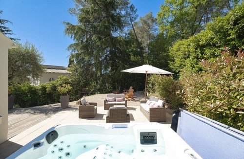 This spacious and contemporary villa is ideally located within walking distance to the village of Valbonne. With its modern and high end interiors, views over the garden and pool, air-conditioning, sauna and Jacuzzi, it' is the ideal holiday home in the South of France.