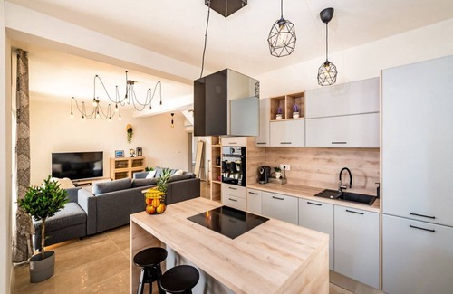 Standing proudly in the beautiful Dalmatian city of Biograd na Moru is the luxurious Villa Magali, a modern-style, five-bedroom holiday home accommodating up to 10 adult guests and two children. This completely fenced property offers total privacy to its guests and offers parking for up to 3 cars, making it a popular choice with families and adult-only groups alike. The property's interior is classy and stylish, with a light, natural decor with accents of white and glossy black, contemporary style light fittings, plush soft furnishings and well-made, modern furniture.