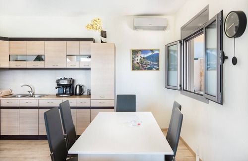 The villa "Magic View" in Oropos is the ideal accommodation for a relaxing holiday. The 2-storey property consists of a living room, a fully-equipped kitchen, 4 bedrooms and 2 bathrooms as well as 2 additional toilets and can therefore accommodate 10 people. Additional amenities include Wi-Fi (suitable for video calls) with a dedicated workspace for home office, a smart TV with streaming services, air conditioning, a fan, heating as well as a washing machine. A baby cot and a high chair are also available.