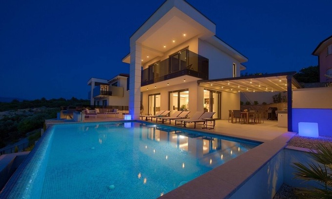 Villa MAJESTIC with sauna and beautiful views is located in Vrbnik. Villa MAJESTIC with sauna and beautiful views provides accommodation, featuring Pool, Balcony/Terrace, Wellness Facilities, among other amenities. This Villa features Pool, Balcony/Terrace, Wellness Facilities, to make your stay a comfortable one.