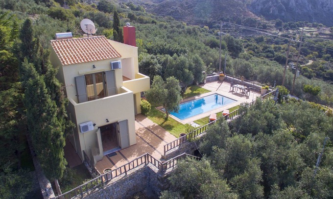 Villa 'Malathiros 3 with Private Pool' with Sea View, Wi-Fi and Air Conditioning | Villa in Milia