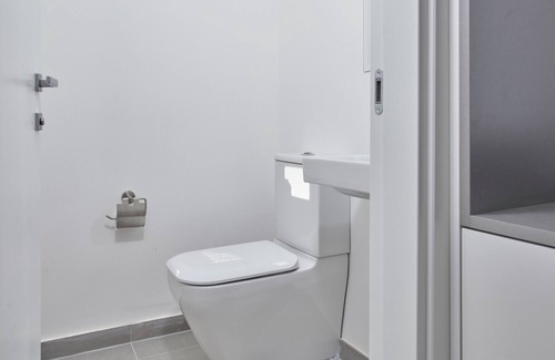 A guest toilet and completes the room offer on the first floor. An open staircase leads to the upper floor, where you will find the four super nice double bedrooms. Each has a chic en suite bathroom with underfloor heating - the two rooms with double beds each have a bathroom with shower and bathtub, the other two have a bathroom with shower.