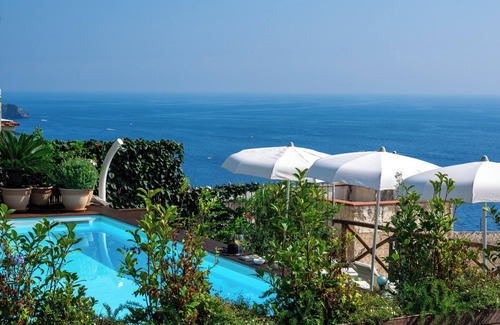 An exquisitely furnished sea-facing villa with indoor heated and outdoor pools and spa area close to charming Praiano on the Amalfi Coast