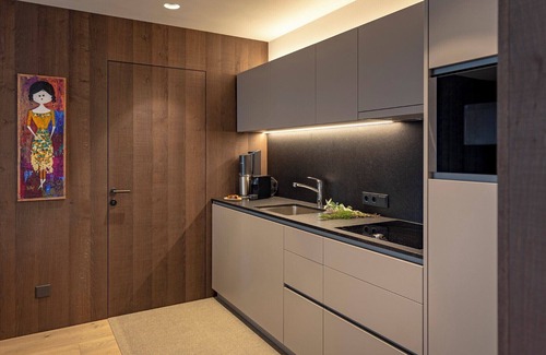 The holiday apartment also offers a private balcony where you can enjoy the gorgeous view of the surrounding mountains.