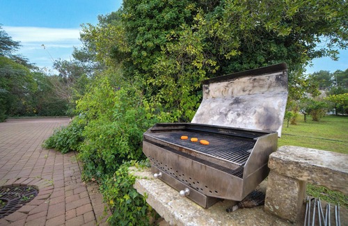 Outside the property is surrounded by lush greenery, a generous private garden, a BBQ and a shady terrace set up for lazy alfresco dining.