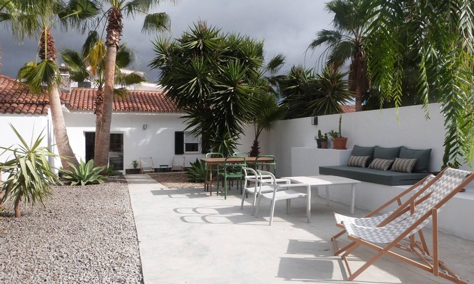Charming and peaceful apartment located in a unique natural area in the south of Tenerife. A landscape of unparalleled beauty, a quiet place to relax and enjoy your holiday. The villa currently has all the necessary amenities, while retaining the traditional charm. It is distributed in a modern kitchen, one bedroom, bathroom, satellite TV, Wifi, spacious living room with access to a spectacular terrace which has a seating area, barbecue and sun loungers.