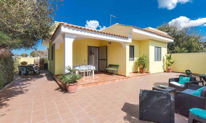 Villa Mariais a large10-bed vacation cottagejust 100 meters from Punta Prosciutto beach, one of the most beautiful and famous beaches along the Porto Cesareo coastline.