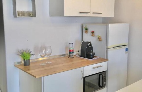 Food & DrinkTea/Coffee makerBathroomShower, Hairdryer, Toilet, Private Bathroom, Towels, Toilet paperMedia & TechnologyTV, Flat-screen TVKitchenRefrigerator, Microwave, Electric kettle, Kitchenware, Toaster, Coffee machine, Dining table, Wine glassesGeneralFan, Heating, Private entrance, Tile/Marble floor, Trash cans, Fire extinguisherOutdoorsPatio, Terrace, Outdoor furniture, Outdoor dining areaViewView, Sea view, Garden view, Mountain view, Quiet street viewLiving AreaDining areaBedroomWardrobe or closet, LinensAccessibilityEntire unit located on ground floorBuilding CharacteristicsDetached, Private apartment in buildingRoom AmenitiesClothes rack, Drying rack for clothing, Socket near the bed |