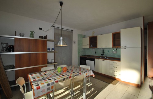 Apartment for 4-6 people, on the first floor with a spacious terrace, where you can have dinner and enjoy relax and sun. Large living room with kitchenette, double sofa bed, two bedrooms, one double and one with bunk bed and bathroom with shower.