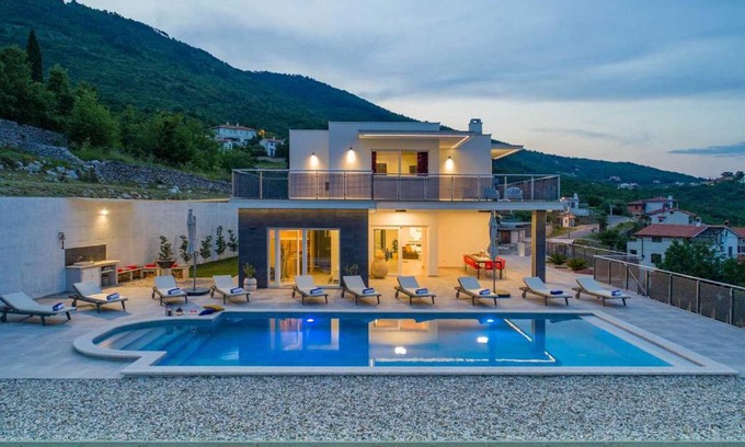 Villa Maru, a property with a garden and a terrace, is set in Martina, 40 km from Pazin Castle, 42 km from HNK Rijeka Stadium Rujevica, as well as 45 km from The Maritime and History Museum of the Croatian Littoral. The air-conditioned accommodation is 2.6 km from Brsec Beach, and guests benefit from private parking available on site and free WiFi. The holiday home has 6 bedrooms, a TV with satellite channels, an equipped kitchen with a fridge and an oven, a washing machine, and 7 bathrooms with a shower. Towels and bed linen are offered in the holiday home. The holiday home offers a sauna. The Croatian National Theatre Ivan Zajc is 46 km from Villa Maru, while Trsat Castle is 49 km from the property. The nearest airport is Pula Airport, 65 km from the accommodation.