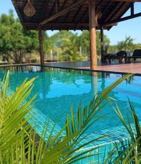 Villa Mauruuru offers accommodations in Marau, 1.5 miles from Ponta do Muta Beach. Featuring pool and garden views, this villa also has free Wifi. The villa is also equipped with a garden, a rooftop pool, and a terrace where guests can chill out. The air-conditioned villa consists of 1 bedroom, a living room, a fully equipped kitchenette with an oven and a coffee machine, and 2 bathrooms with a shower. Towels and bed linen are featured in the villa. The accommodation is non-smoking. Barra Grande Airport is 2.5 miles away.
