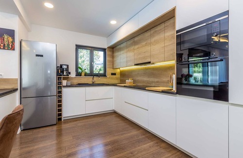 Villa MERAVIGLIA is located in Kosić, island Krk and can accommodate up to 8 persons. It has four double bedrooms, two with a double bed and two with single beds, three bathrooms, guest toilette, living room and kitchen with dining area. It all spreads over two floors. In the outdoor area there is a private pool, a covered terrace and private garden at your disposal. Pets are welcome too! WiFi, airconditioning, parking spot provided. Nice, peaceful location, only 5 driving minutes away from the town Krk. Book this gorgeous villa and enjoy!
