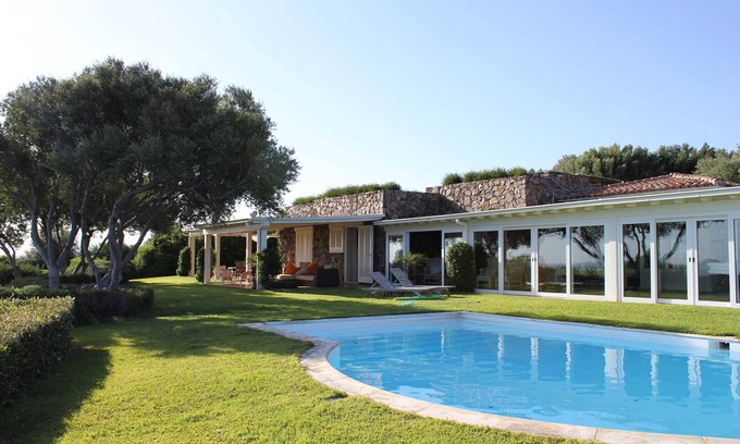 Exclusive 4 bedroom luxury home very close to wonderful beaches (8 min by foot) with a very large park - garden and a swimming pool without chlorine. The house was build from the famous Italian architect Gamondi and so one of the nicest villas of the Costa Smeralda with incredible open views on the water from all rooms and bedrooms.