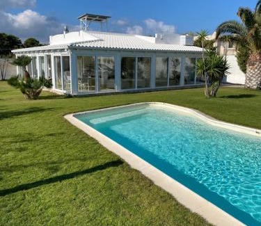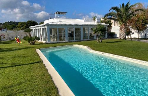 Providing a garden, Villa Miami Vieste provides accommodations in Vieste. This beachfront property offers access to a patio, free private parking, and free Wifi. The villa has water sports facilities and an electric vehicle charging station. Offering a terrace and sea views, the spacious villa includes 4 bedrooms, a living room, satellite flat-screen TV, an equipped kitchen, and 4 bathrooms with a bidet and a shower. Featuring air conditioning, this unit has a dressing room and a fireplace. The property has an outdoor dining area. Guests can make the most of the warm weather with the property's barbecue facilities. The villa also offers an outdoor swimming pool and a solarium for guests to relax in. Molinella Beach is a few steps from Villa Miami Vieste, while Vieste Harbour is 3.5 miles from the property. Foggia "Gino Lisa" Airport is 62 miles away.