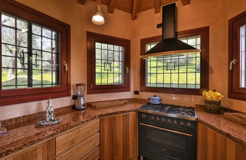 Villa Mignaga is nestled in the green countryside, surrounded by olive trees and beautiful nature, making it an oasis of tranquility. Located just a few kilometers from the lake, this villa offers an ideal position for those seeking ultimate relaxation without sacrificing the beauty of Lake Garda. With its panoramic view of the lake, it will be the perfect place to enjoy serenity and peace, away from the hustle and bustle but only a short distance from everything the area has to offer.