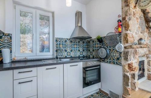 Additional amenities include a cosy fireplace, Wi-Fi, and an iron. The villa is pet-friendly, allowing up to two animals. Located just 300 metres from a rock beach and offering a tranquil setting, this property provides an excellent base for exploring the beautiful Cres region.