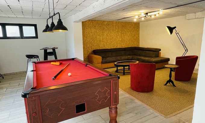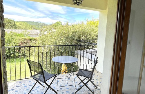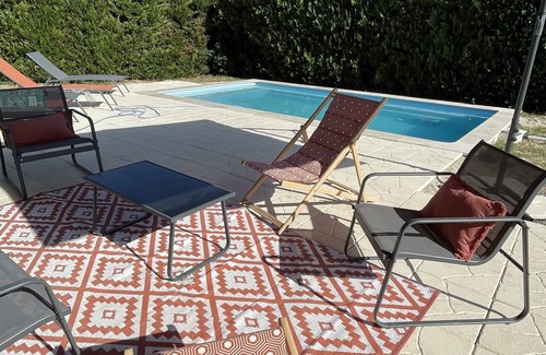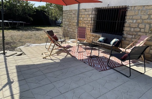 To rent " villa MIMI ", in the Gard, villa surrounded by old villages like AIGUEZE, SAINT MARTIN D ARDECHE, Vallon pont d'Arc (30mn), and bigger cities like Uzès, Avignon, Nîmes, Orange.this villa includes 3 bedrooms, 1 with queen size bed and 1 bunk bed; 1 with bed 140, and 1 with bed 160. The villa also has 1 bathroom, living room, dining area, kitchen, large terrace, landscaped garden with shady areas for lazy days. For sports days at home, there is a table tennis table, darts, bowls and table football. For your comfort, board games are at your disposal.