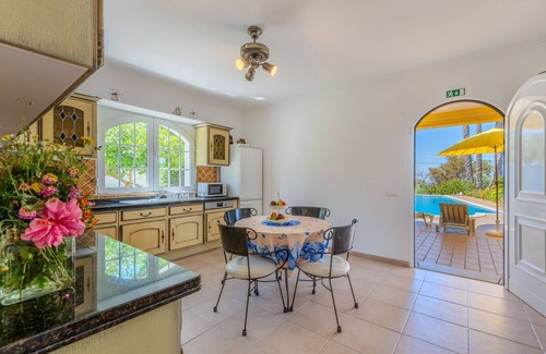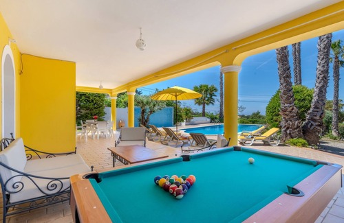 Alfarrobeira 3 km from Loulé: Sea view from two rooms on the first floor American billiard table with measurements less than a standard billiard table simple, comfortable villa "Villa Monte da Torre", 2 storeys, built in 2002. On the outskirts, 4.3 km from the centre of Loulé, in a quiet position, 10 km from the sea. Private: property 2'000 m2, garden 1'700 m2, swimming pool angular (13 x 5 m, depth 80 - 200 cm, seasonal availability: 01.Jan. - 31.Dec.). Outdoor shower, arbour, garden furniture, barbecue. In the house: WiFi, air conditioning, burglar alarm system. Parking at the house. Supermarket 2.7 km, shopping centre 2.7 km, restaurant 550 m, railway station "Faro Train Station" 13.1 km, sandy beach "Praia de Ancão" 10.3 km. Marina 13.9 km, golf course (18 hole) 9.7 km, riding stable 10 km. Nearby attractions: Kayac&SUP Caves Tours St. Eulália Beach 36.1 km, Fuseta Boat Tours & Water Sports 29.8 km, Marina de Vilamoura 13.9 km, Ria Formosa Natural Park 23.3 km, Aquashow Park Quarteira 7.4 km, Mar Shopping Algarve 2.7 km. Please note: car recommended. Loading and unloading of baggage is possible at the holiday house.