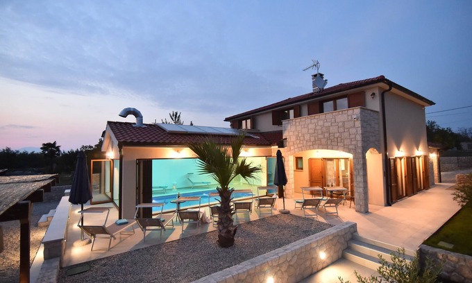 Located on the beautiful island of Krk, this spacious villa is a great choice for those looking for comfortable accommodation near the sea. The villa features 8 functionally furnished bedrooms, 4 bathrooms, and two additional toilets, providing plenty of space for larger groups.One of the villa’s highlights is the covered and heated swimming pool, perfect for swimming throughout most of the year. For added entertainment, guests can enjoy table tennis, billiards, and table football.The nearest beach is just 2 kilometers away, making it easy to enjoy the sea and explore the island's many attractions. Krk offers a mix of scenic beaches, local gastronomy, cultural sites, and picturesque towns worth discovering.An ideal option for anyone looking to combine comfort, amenities, and a great location on one of Croatia’s most popular islands. Distances: restaurant 1000m, shop 1000m, center 1000m, sea 2000m, beach 2000m, airport 32000m.