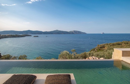 "My Poros" villa is set upon a hilltop , on the mainland of the municipality of Poros, offering uninterrupted magical views of the sea. It consists a wonderful blend of minimalistic style with its surrounding rugged landscape.