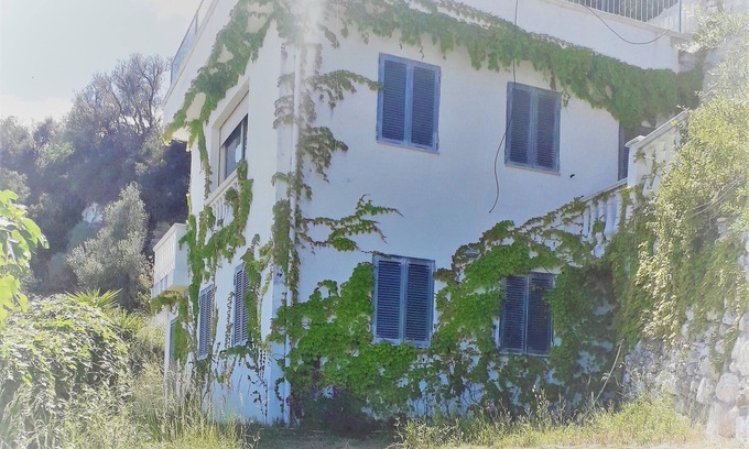 The villa has two levels: on the first level there are two bedrooms, a large entrance, a first kitchen, a bathroom with a bathtub.