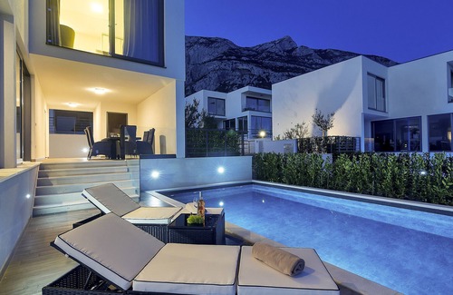 The villa is located on Veliko Brdo, the hill above Makarska, and offers modern amenities and high-quality furnishings.