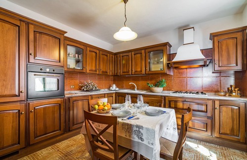 - Large equipped kitchen connected to the terrace overlooking the mountain