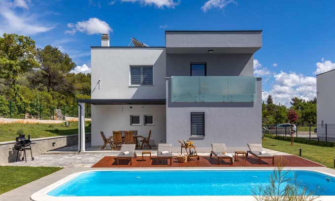 Villa is located in quiet environment and in complete privacy, the villa is surrounded on three sides by a forest in untouched nature only 2 km to the olld town Šibenik. It has been designed and furnished with a lot of taste and will offer you a comfortable stay during your holiday. Adjacent plot also urban villa