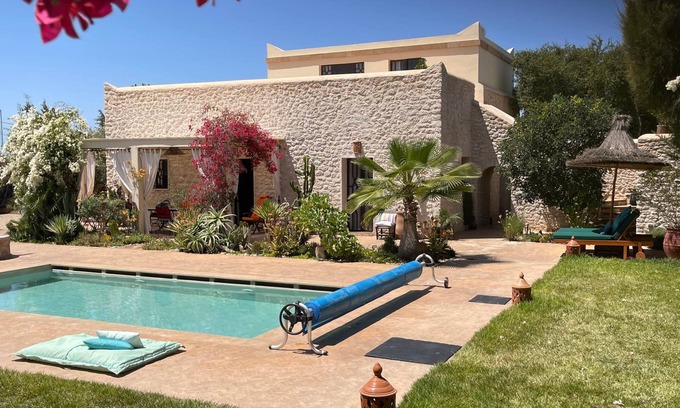 "VILLA ALWAN BARAKA", near ESSAOUIRA, is fully privatized during the rental periods. It combines the traditional charm "Beldi" and all the modern comforts. Daily house staff in the morning. HEATED POOL(seasonal option).