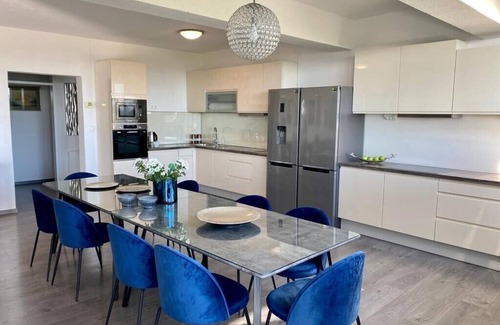 Villa Noura is located in beautiful Makarska. The entire facility is at guests disposal. It is spread over two floors connected by an internal staircase. The villa has 6 rooms with bathroom and 1 room without bathroom. Each room is air conditioned and has a TV. The fully equipped kitchen contains a microwave, oven, dishwasher, coffee maker. Spacious living room with a large smart TV and PS4 is available. Villa Noura also has a private gym. In addition to the 36 m2 swimming pool, which has the possibility of heating water, there is a children's playground, table tennis (ping-pong), darts and barbecue. You can enjoy on the balcony or terrace with panoramic views of the city and the sea. Private outdoor parking is also available to guests and has the possibility of parking for 5 vehicles.