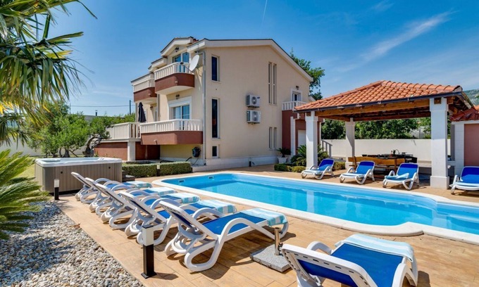 Villa Novi is a lovely and large home on Dalmatia's sparkling coast, only 1.3km away from the beach. Backed by picturesque green hills, the home is brilliant for photo enthusiasts as there are stunning photo opportunities at every corner. The home is situated in the small coastal town of Kastel Stafilic, nearby two UNESCO heritage cities and enjoys the peace and tranquillity that the surrounding area provides. At this home, you will be able to appreciate glistening sea views from both floors.
