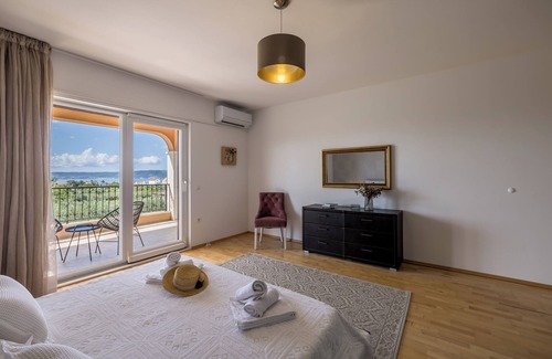 The villa has a terrace with a sea view, 5 bedrooms, a living room, a flat-screen TV with satellite programs, an equipped kitchen, and 3 bathrooms with a massage bathtub and bidet. Towels and bed linens are available in the villa. For additional privacy, the accommodation has a private entrance and soundproofing.