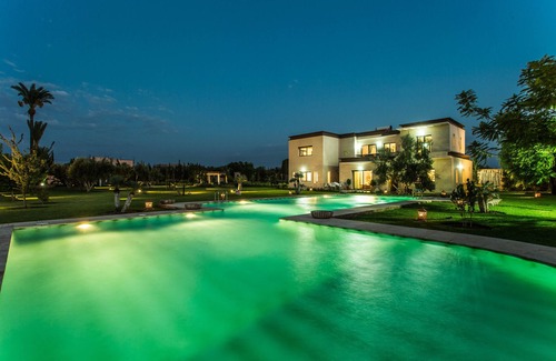 Located at Ourika Road (Km 21) just 20 minutes from Marrakech, this sumptuous 6,500m² Villa with large swimming pool, large garden and breathtaking views of the Atlas is ideal for a relaxing family getaway.