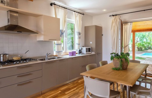 Guests can enjoy private parking, stone barbecue area and a beautiful infinity pool, ideal for cooling off on hot summer days. The villa is also equipped with all amenities, including: