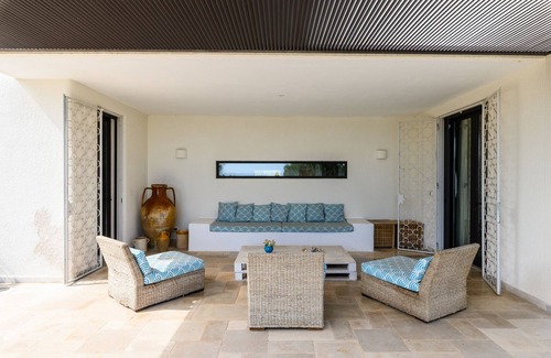 Beautiful villa in the countryside of Carovigno, a short distance from Torre Guaceto Marine Protected Area. It is a perfect solution to enjoy a relaxing holiday surrounded by nature.The villa is spread over one floor, which can be reached by going up a few steps, and welcomes guests with an elegant patio featuring a sofa, some armchairs and a coffee table. The entrance leads to the open plan living area, furnished with a double sofa bed, an armchair, some coffee tables, a TV, a dining table and a kitchen equipped with many cooking tools including a microwave, a kettle, a toaster and an espresso coffee machine. The kitchen area has access to a back patio, covered by a shed, where guests will find a large dining table and a barbecue.A hallway leads to the sleeping area, which consists of two bedrooms, the first one with two single beds, one of which is a loft bed, and a dresser, the second one with a queen-size bed, an ensuite bathroom with shower and an access to the entrance patio. A second bathroom with shower completes the layout.The jewels of this villa are the swimming pool surrounded by nature, with a relaxation area featuring sunbeds and chairs, and the roof terrace that can be reached by a back staircase, from which guests can enjoy an amazing view of the sea and the surrounding countryside.Amenities such as free wi-fi, washing machine, air conditioning and heating will be at guests’ disposal.Guests will benefit from two outdoor parking slots inside the property.Cot and high chair available upon request, at an extra cost of 35€ per stay, per item.*Upon arrival or a few days before arrival it may be required to pay a tourist tax, which varies according to local regulations. You will find your reservation details within the Guest Area of Wonderful Italy.“Surrounded by the lush green of the trees planted on slopes”, the town of Carovigno is part of northern Salento, in the province of Brindisi, and is a famous center of olive oil production. The Castle of Carovigno bears the name of the city in which the ancient Carbina was built, and like all fortified monuments it’s the highest part of the area while underground it’s possible to visit the “dungeons” used as cells and cellars. Worth visiting is the historic centre with its four proud towers, three of which are still standing. Not far away there are the churches of the town: the mother church dedicated to the Assunta and the “Chiesa del Carmine', with frescoes from the XVIII century. The city of Carovigno hosts every year the “Press Tour Carovigno' which organizes guided tours, olive harvesting and tastings.The accommodation is 25 minutes away from Brindisi airport by car.