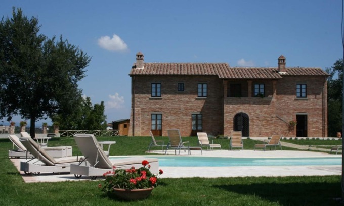 VILLA OVIDIO is a beautiful brick and stone house with private pool recently restored and situated in an ideal position, among the rolling hills near Monte San Savino.