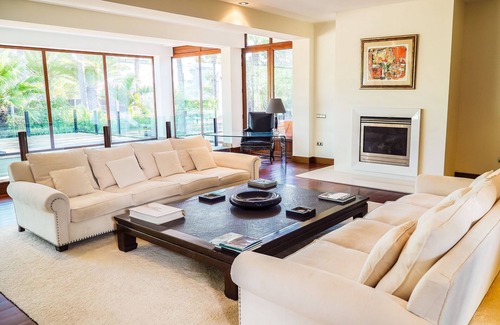 Nestled within Mediterranean greenery, the luxurious Villa Palmeras is situated in a central location in Yaiza and impresses guests with its expansive outdoor area and beautiful decor. The spacious, 2-storey house consists of a living room, a well-equipped kitchen with a dishwasher, 5 bedrooms as well as 5 bathrooms and an additional toilet and can therefore accommodate 8 people. The child-friendly holiday home includes Wi-Fi, air conditioning, a washing machine, a dryer, a fireplace, satellite television, a billiard table, a baby cot, a children's bed and a highchair. Your private outdoor area consisting of a balcony, a garden, furnished terraces (open and covered), a barbecue and an outdoor shower, invites you to enjoy relaxing holidays in this wonderful villa. The highlight of this accommodation is definitely its indoor leisure area with a pool (which can be heated), a sauna, a jacuzzi and gym equipment. Due to its excellent location, restaurants, bars, cafes and the nearest supermarket can be reached on foot in approximately 15 minutes and the beautiful marina of Puerto Calero is a 16-minute walk away (1.3 km). Furthermore, Playa Chica beach and Playa Grande beach await your visit an 11-minute drive away. This is also the ideal accommodation for nature and hiking lovers as there are many hiking trails in the area.