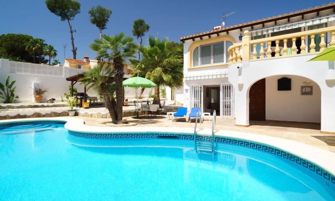 Child friendly, very beautiful, cosy house "Villa Paradise", 2 storeys, renovated in 2015. 1 km from the centre of Moraira, in a quiet, sunny position, 900 m from the sea, from the beach. Private: property 850 m2 (fenced), beautiful, well-kept garden, swimming pool kidney shaped, with privacy (10 x 5 m, seasonal availability: 01.Jan. - 31.Dec.) with internal staircase. Outdoor shower, pool house with fridge. In the house: air conditioning. Parking (for 2 cars) on the premises. Shop 2 km, supermarket 2 km, restaurant, bar 200 m, bus stop 2.5 km, sandy beach "Playa L'Ampolla" 1 km. Please note: car recommended. Suitable for families, suitable for seniors. The owner does not accept any youth groups. 1st floor is closed and not occupied. Part of the house is closed and unoccupied.