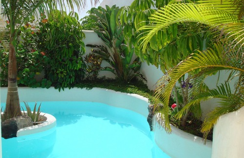 Villa paradisus, a haven of peace and tranquility where you can relax, 5 minutes from the white sand beach and turquoise water more virgin and paradise of fuerteventura, in the natural park of the dunes, just 3 minutes from downtown and 300 meters from a hypermarket. Villa Paradisus is located within the Bahiazul complex, a luxury urbanization of white and indigo villas, with a 24-hour security barrier at the entrance, restaurant, spa, gym and paddle. Villa Paradisus is a beautiful corner house of 350 m2, beautifully designed, with 3 suites rooms with bathroom and direct access to the pool, living room, 1 37 'plasma TV, fully equipped kitchen, private heated pool with lighting, solarium area and Garden decorated with volcanic rock and tropical plants, a roof terrace with porch, barbecue and garage. Villa Paradisus is unique, it is decorated in an elegant style, nothing conventional and very different from all the villas in the complex, with Provençal and French-style furniture in light color, high quality and design
