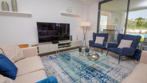 Villa Paraiso, 15 is located in Manilva, just a 8-minute walk from Playa de la Duquesa - El Castillo and half a mile from La Duquesa Golf Club. This property offers access to a terrace and free private parking. The villa also offers an outdoor swimming pool and a garden for guests to relax in. The air-conditioned villa consists of 4 bedrooms, a living room, a fully equipped kitchen with a dishwasher and a coffee machine, and 4 bathrooms with a bath and a hair dryer. Towels and bed linen are featured in the villa. The accommodation is non-smoking. Estepona Golf is 6.5 miles from the villa, while San Roque Golf Course is 11 miles away.